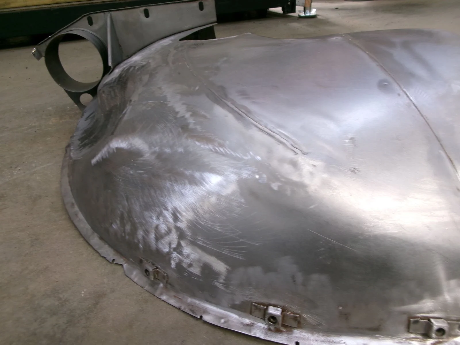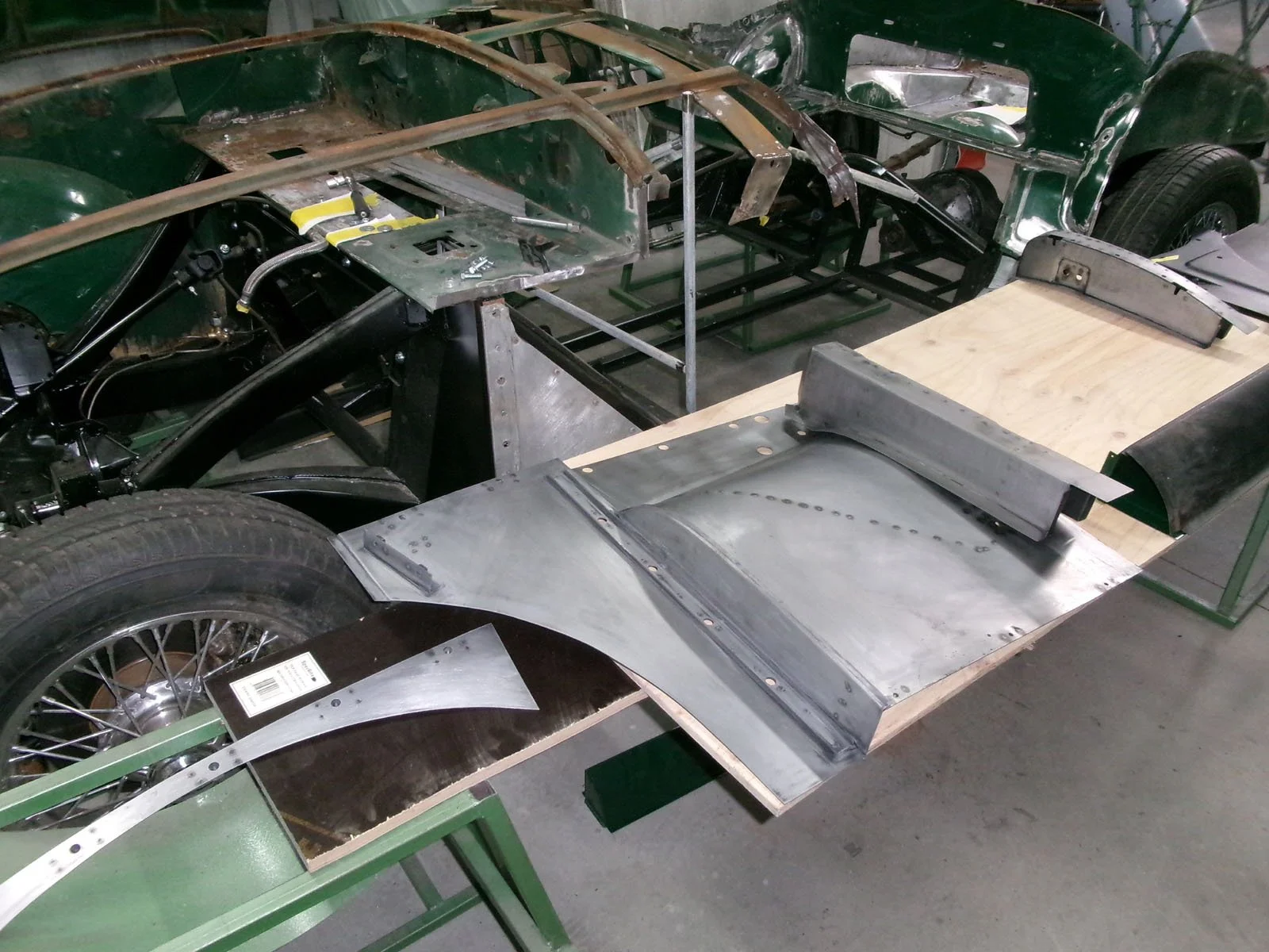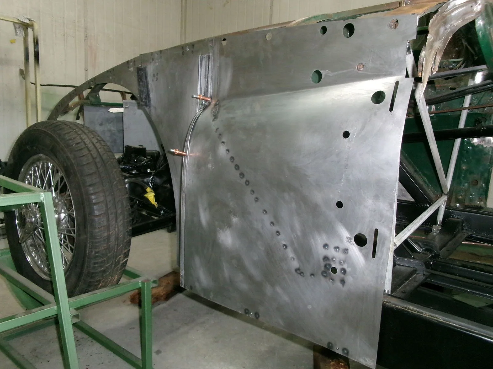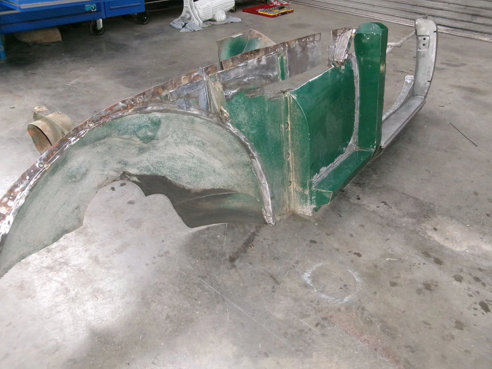 Spot welding the replacement top plate to the chassis.