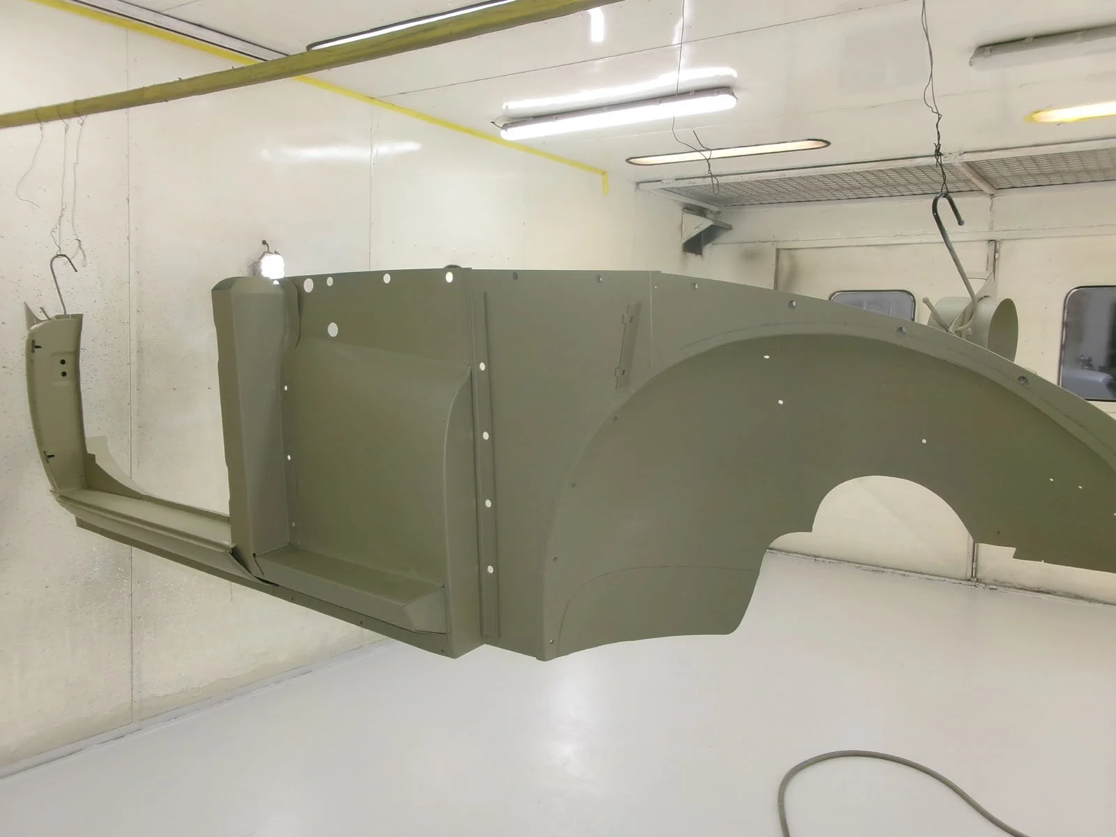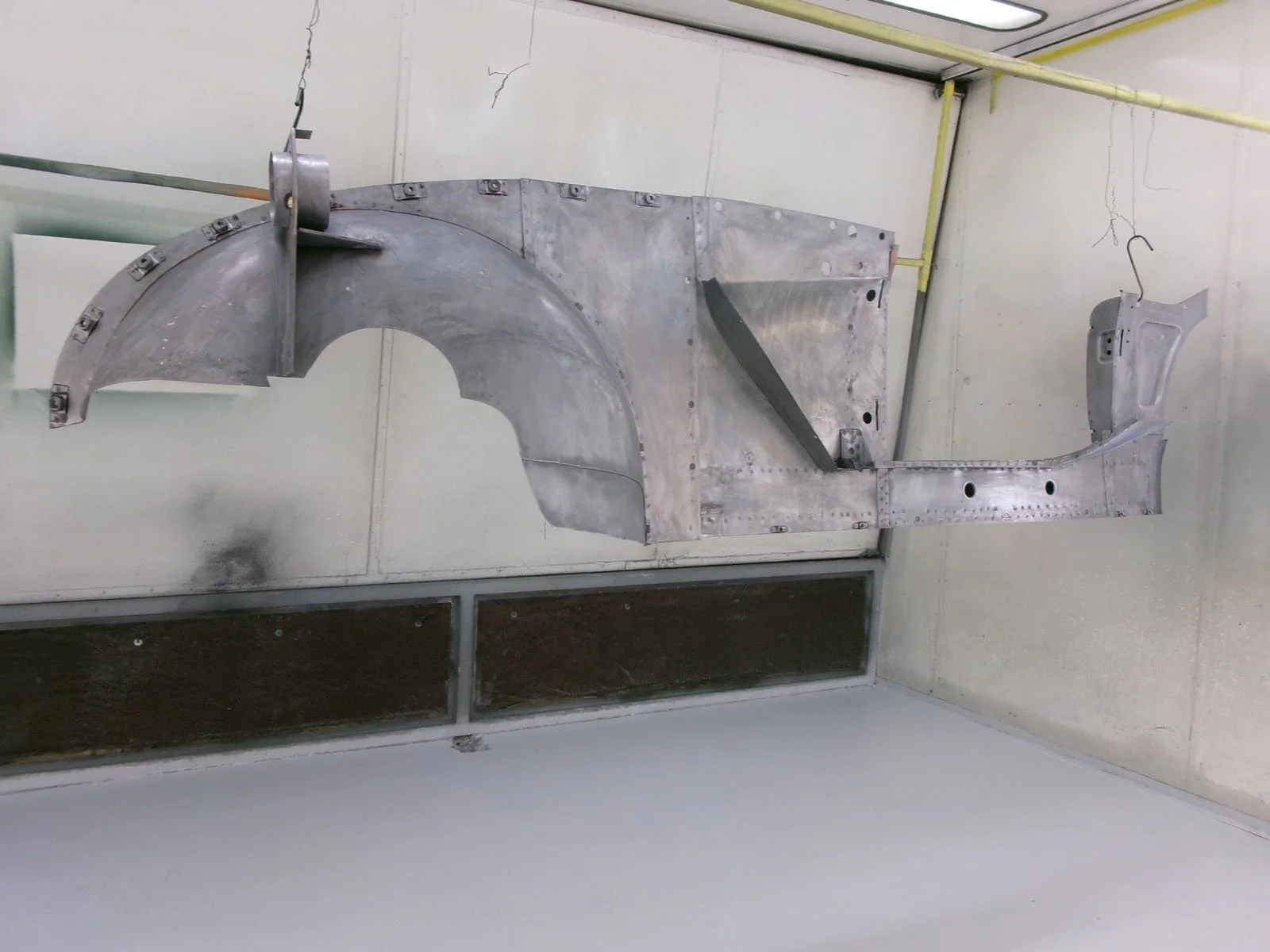 Time laps video showing the chassis being painted in epoxy primer after sandblasting.